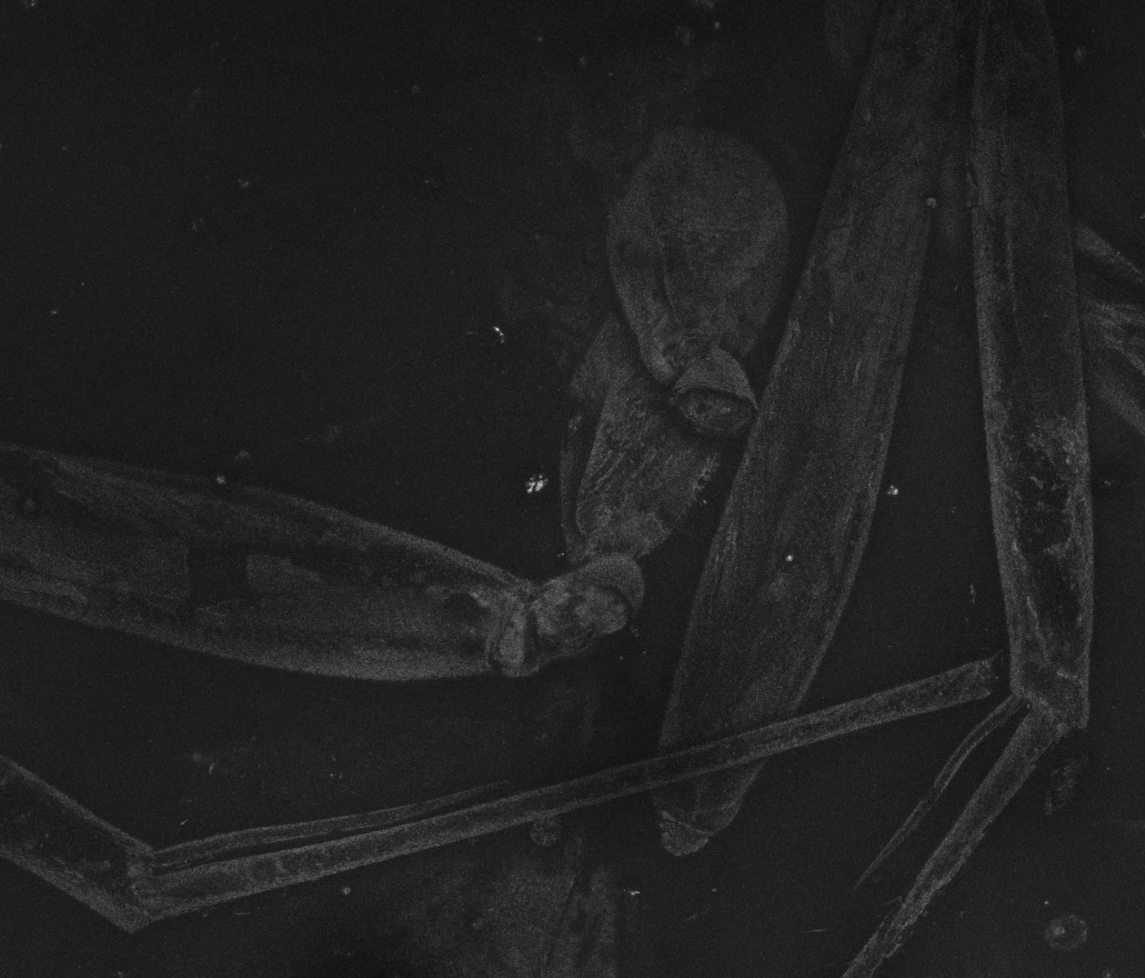 Laser confocal image of the mid and hind legs of a 52 million year old dolichoderine ant preserved within Cambay amber from Gujarat, India.